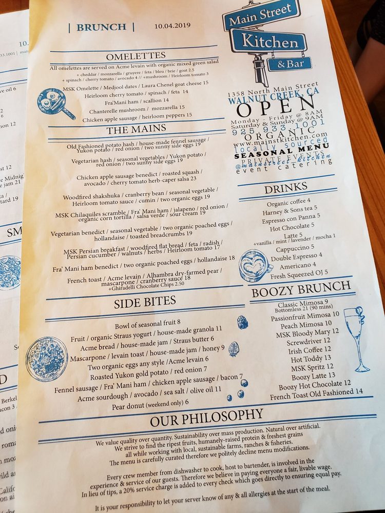 Customer reviews praise the high-quality food and attentive service at Main Street Kitchen. Dishes like eggs benedict, fried chicken sandwiches, and skirt steak receive rave reviews for their flavor and presentation. The restaurant's ambiance is casual and welcoming, perfect for brunch or lunch outings. Overall, Main Street Kitchen is a must-visit for those looking for a memorable dining experience in Walnut Creek.